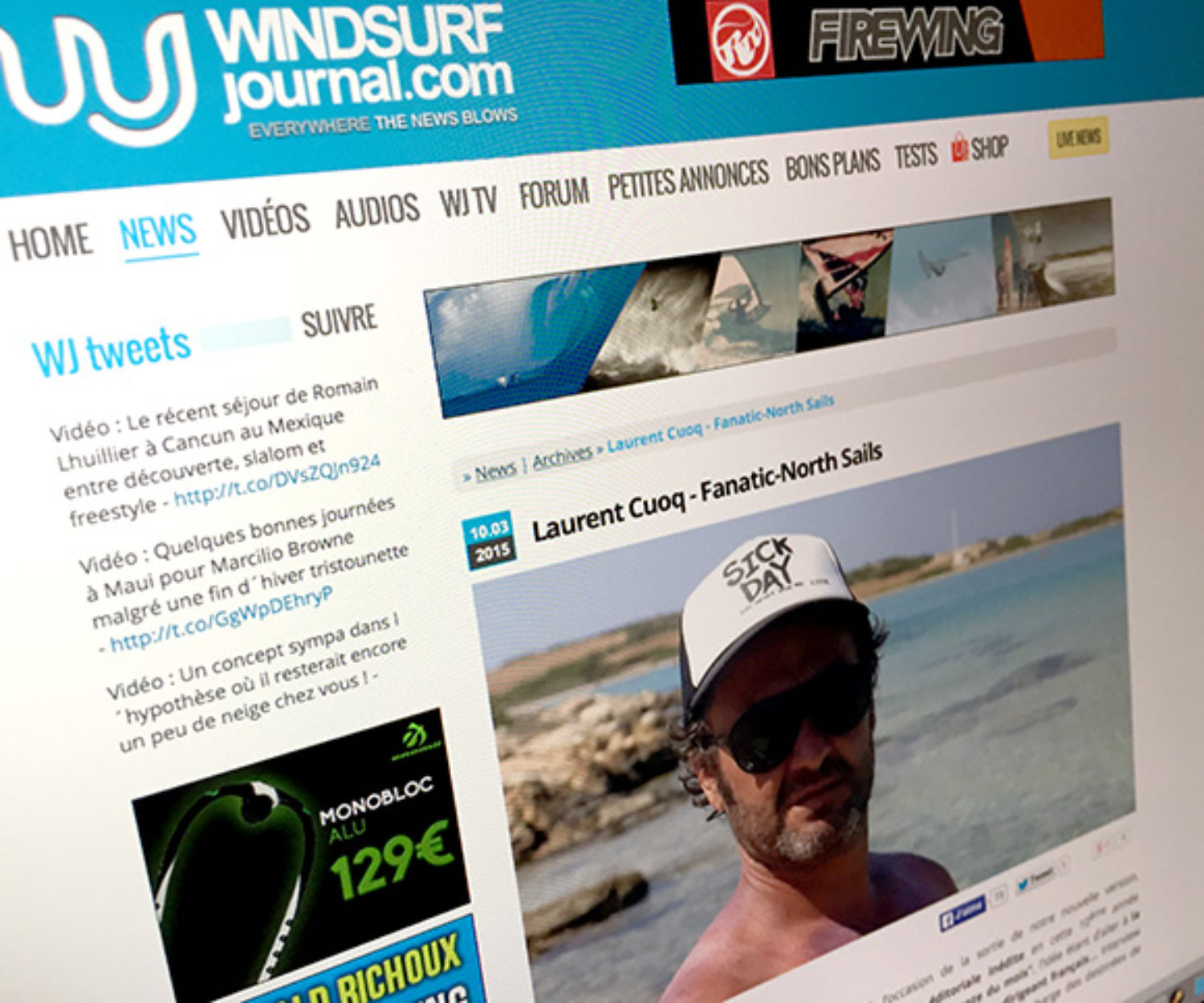NEWS 11 Mar 2015 The Boss on windsurfjournal.com ! Le Boss des marques Fanatic, NorthSails et Ion, Mr Laurent Cuoq repond aux questions de www.windsurfjournal.com. Voir l'interview sur windsurfjournal The… Greg PENNE No Comments